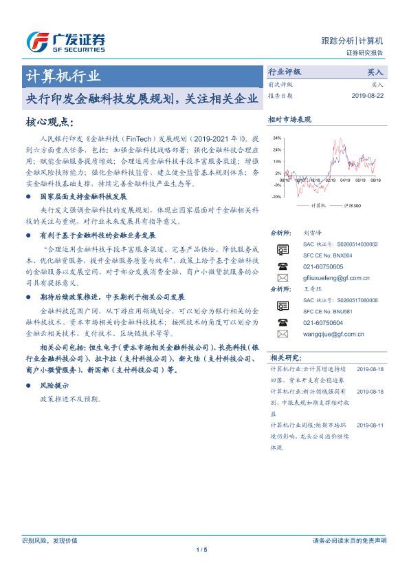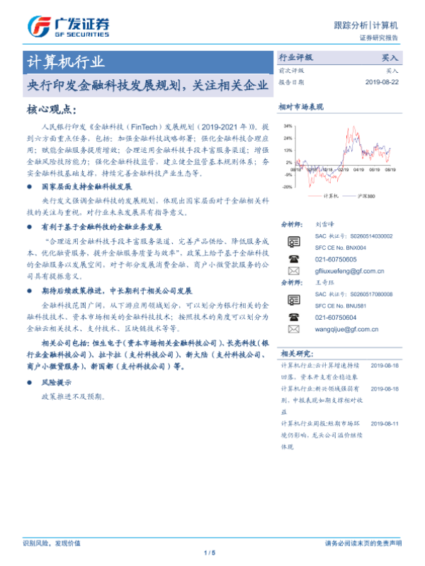 【广发证券】【20190822】计算机行业:央行印发金融科技发展规划,关注相关企业-5页