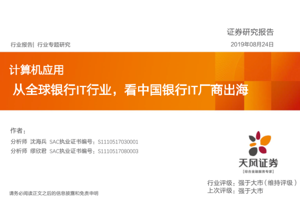 【天风证券】【20190824】从全球银行IT行业,看中国银行IT厂商出海-28页