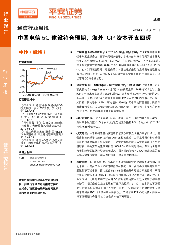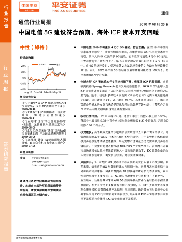 【平安证券】【20190825】通信行业周报:中国电信5G建设符合预期,海外ICP资本开支回暖-5页