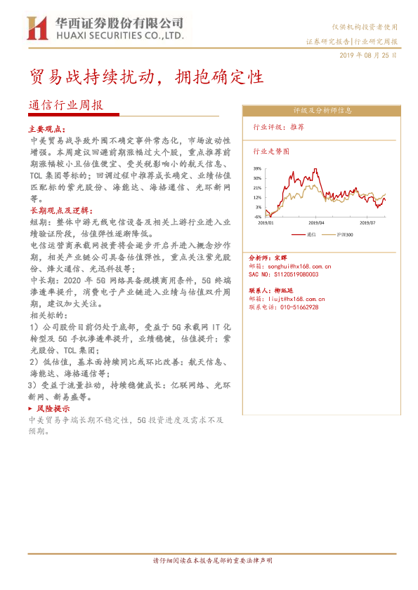 【华西证券】【20190825】通信行业周报:贸易战持续扰动,拥抱确定性-11页