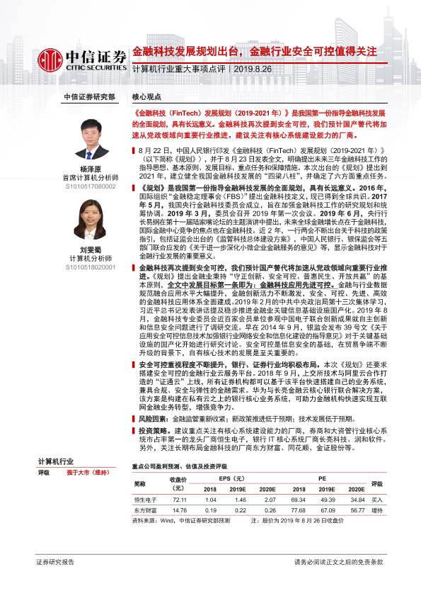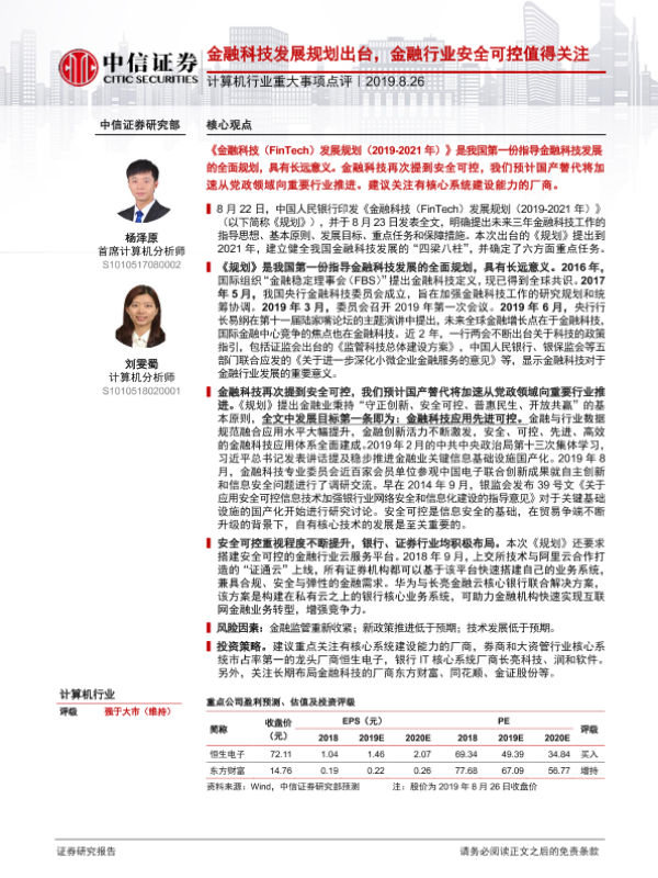 【中信证券】【20190826】计算机行业重大事项点评:金融科技发展规划出台,金融行业安全可控值得关注-3页