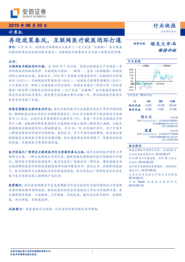 【安信证券】【20190830】计算机行业快报:再迎政策春风,互联网医疗就医闭环打通-3页