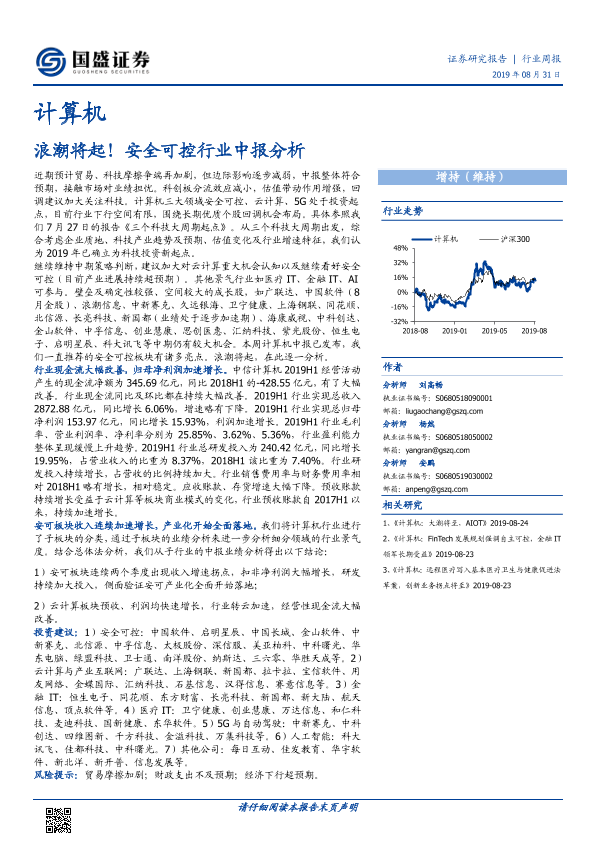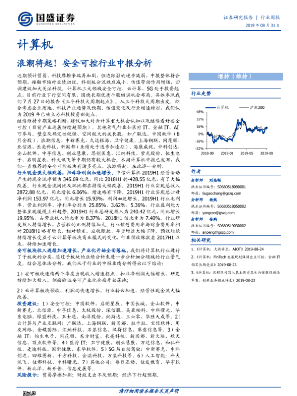 【国盛证券】【20190831】计算机行业周报:浪潮将起!安全可控行业中报分析-13页