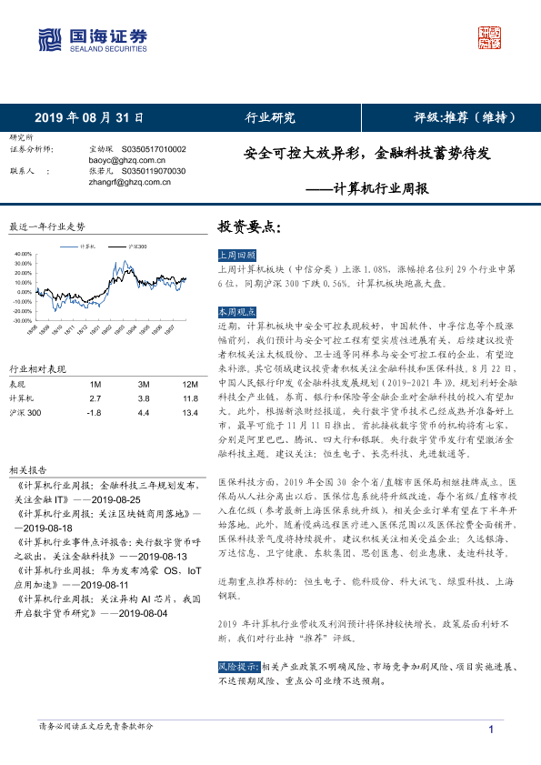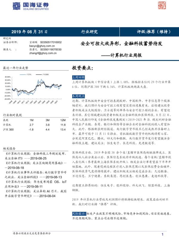 【国海证券】【20190831】计算机行业周报:安全可控大放异彩,金融科技蓄势待发-12页