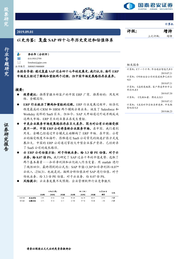 【国泰君安证券】【20190901】以史为鉴:复盘SAP四十七年历史变迁和估值体系-24页