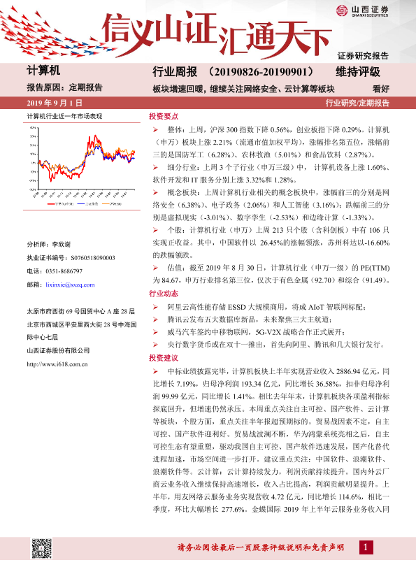 【山西证券】【20190901】20190901-山西证券-计算机行业周报:板块增速回暖,继续关注网络安全、云计算等板块-9页