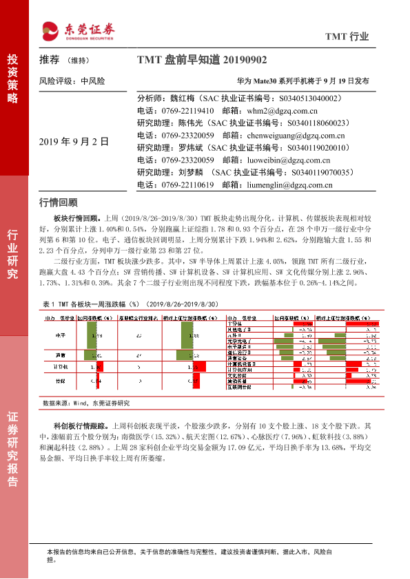 【东莞证券】【20190902】TMT盘前早知道:华为Mate30系列手机将于9月19日发布-5页