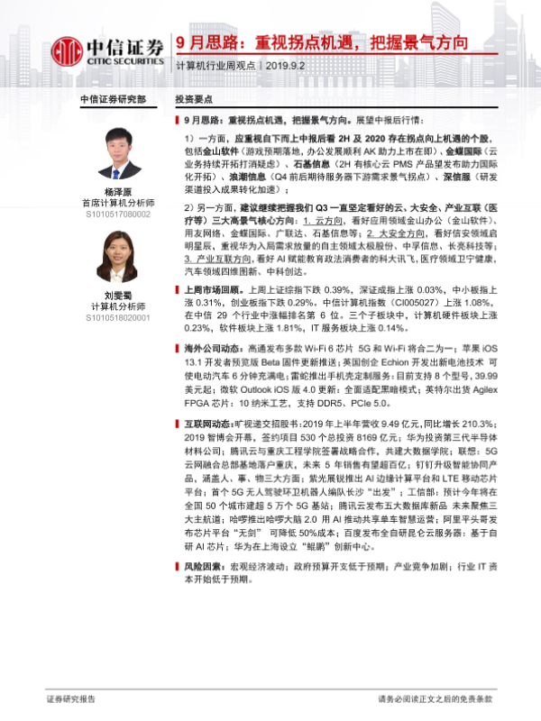 【中信证券】【20190902】20190902-中信证券-计算机行业周观点:9月思路:重视拐点机遇,把握景气方向-10页