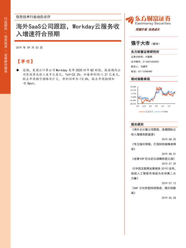 【东方财富证券】【20190903】海外SaaS公司跟踪,Workday云服务收入增速符合预期-3页