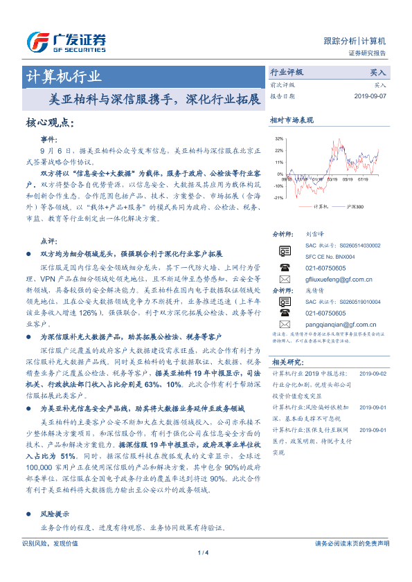 【广发证券】【20190907】计算机行业跟踪分析:美亚柏科与深信服携手,深化行业拓展-4页