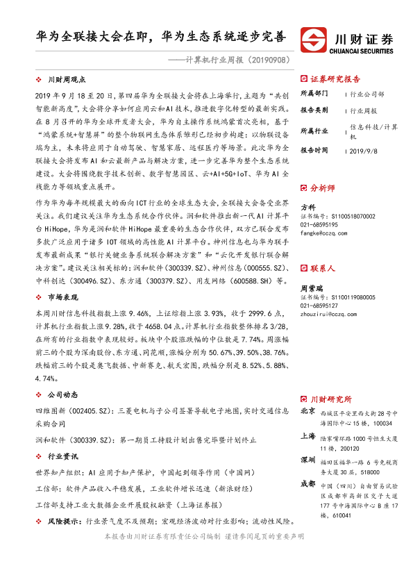 【川财证券】【20190908】计算机行业周报:华为全联接大会在即,华为生态系统逐步完善-10页