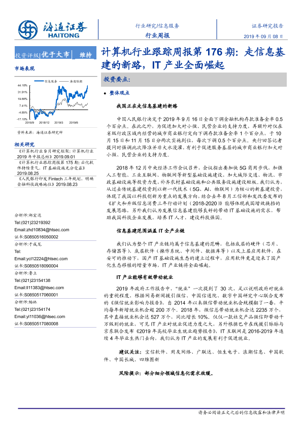 【海通证券】【20190908】信息计算机行业跟踪周报第176期:走信息基建的新路,IT产业全面崛起-6页