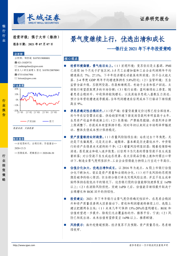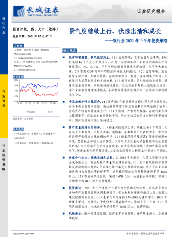 【长城证券】【20210707】银行业2021年下半年投资策略:景气度继续上行,优选出清和成长-21页