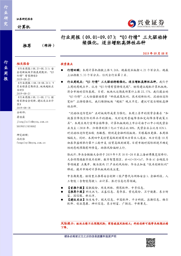 Q3行情 安全创新 技术创新 流动性宽松 计算机行业