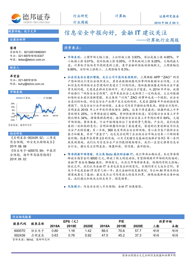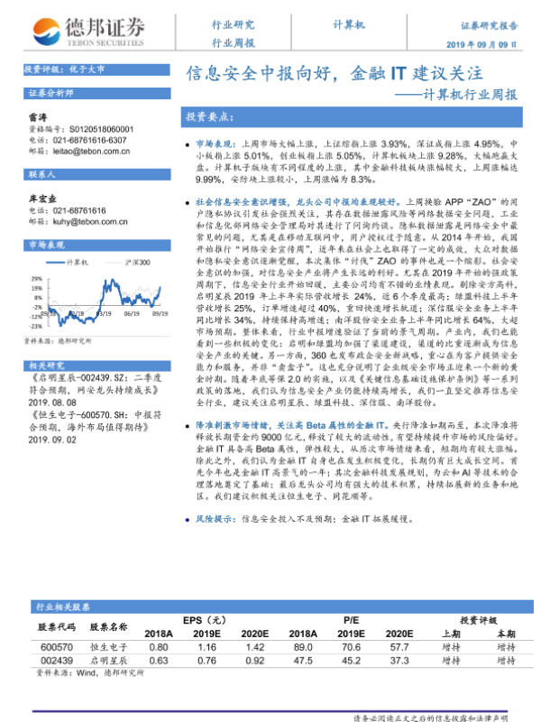 【德邦证券】【20190909】计算机行业周报:信息安全中报向好,金融IT建议关注-4页