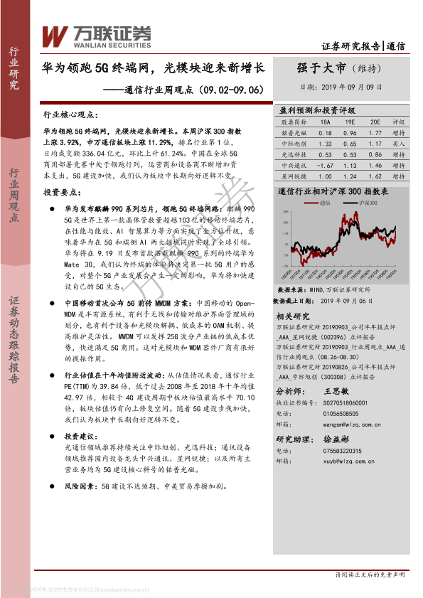 【万联证券】【20190909】20190909-万联证券-通信行业周观点:华为领跑5G终端网,光模块迎来新增长-10页
