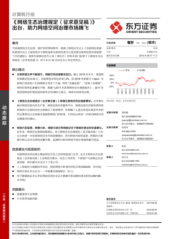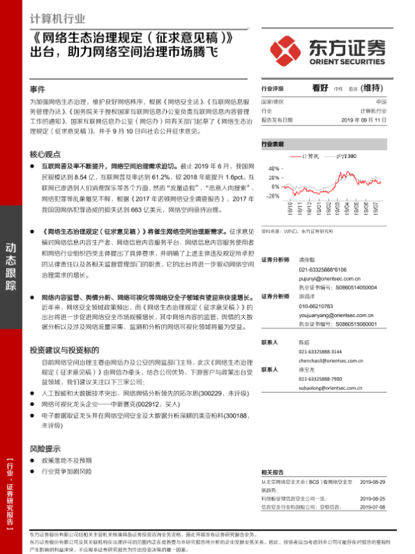 【东方证券】【20190911】20190911-东方证券-计算机行业动态跟踪:《网络生态治理规定(征求意见稿)》出台,助力网络空间治理市场腾飞-3页