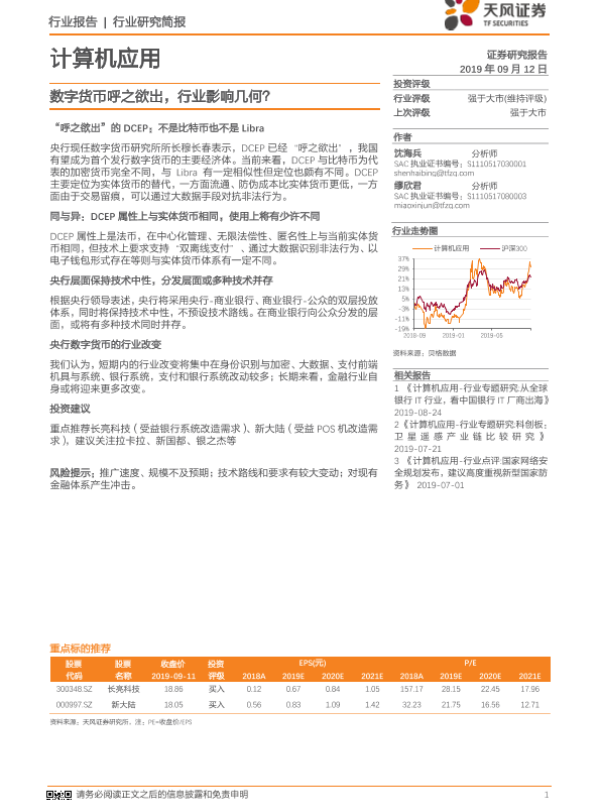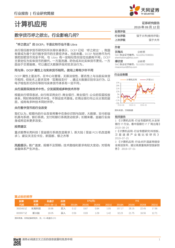 【天风证券】【20190912】计算机应用行业研究简报:数字货币呼之欲出,行业影响几何?-6页