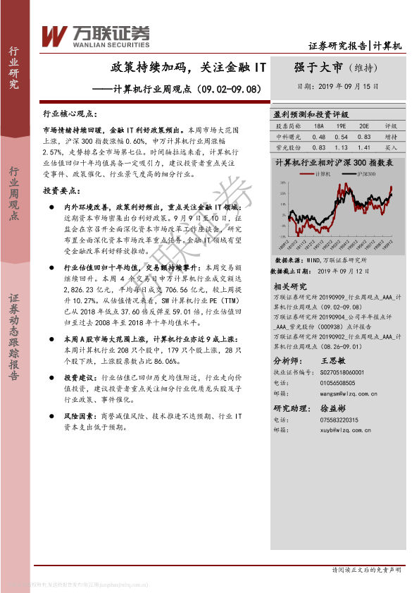 【万联证券】【20190915】20190915-万联证券-计算机行业周观点:政策持续加码,关注金融IT-10页