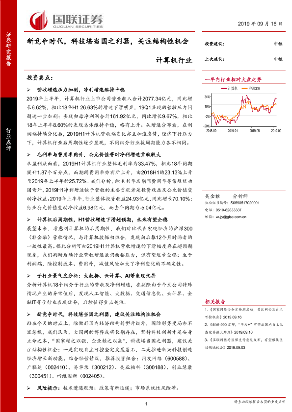 【国联证券】【20190916】计算机行业:新竞争时代,科技堪当国之利器,关注结构性机会-11页