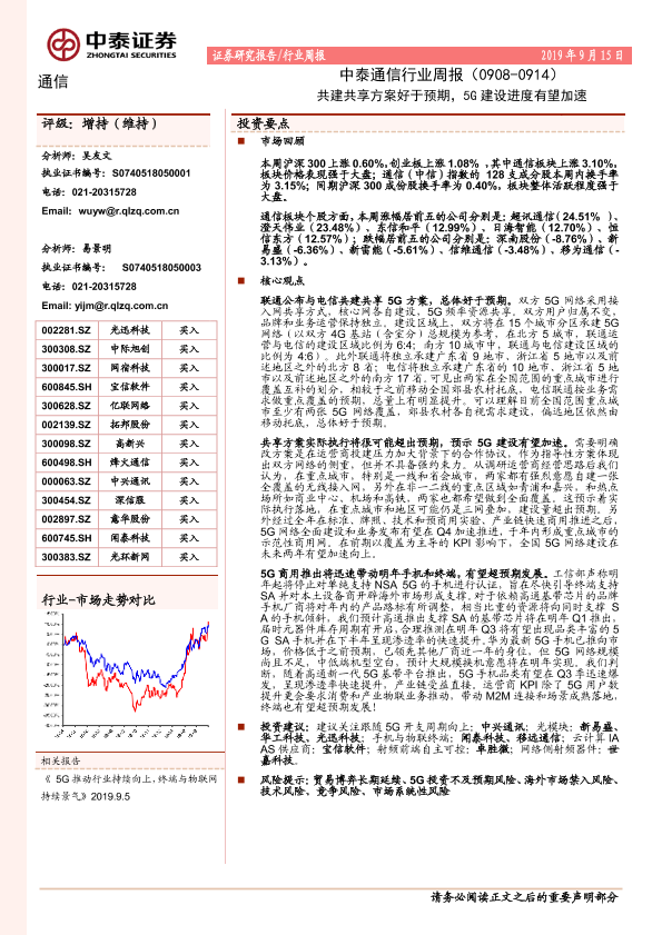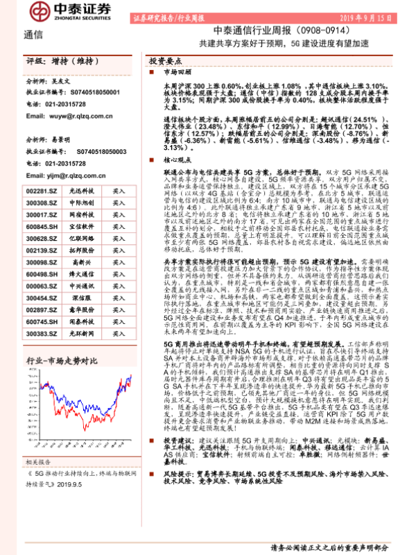 【中泰证券】【20190915】中泰通信行业周报:共建共享方案好于预期,5G建设进度有望加速-11页