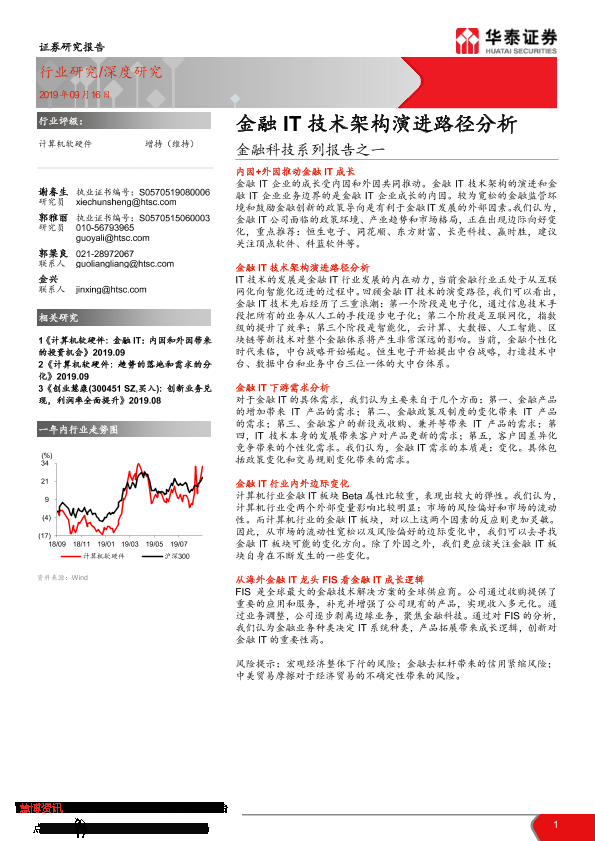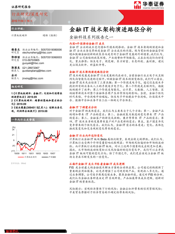 【华泰证券】【20190916】计算机软硬件深度研究:金融科技系列报告之一-金融IT技术架构演进路径分析-57页