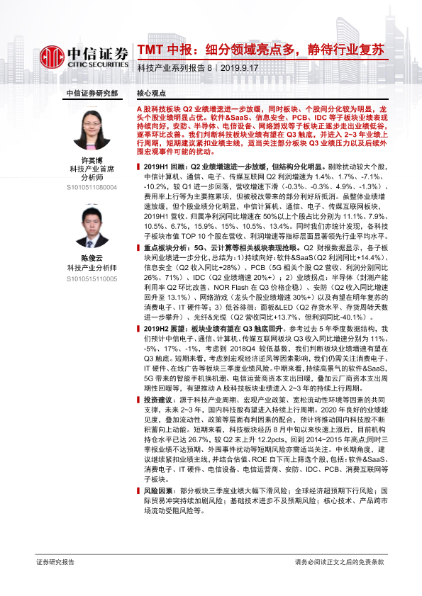 【中信证券】【20190917】TMT中报:细分领域亮点多,静待行业复苏-21页