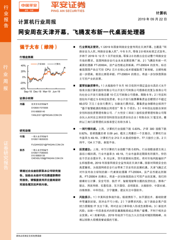 【平安证券】【20190922】20190922-平安证券-计算机行业周报:网安周在天津开幕,飞腾发布新一代桌面处理器-5页