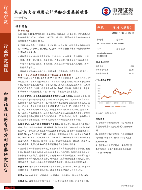 【申港证券】【20190929】从云栖大会观察云计算融合发展新趋势-10页