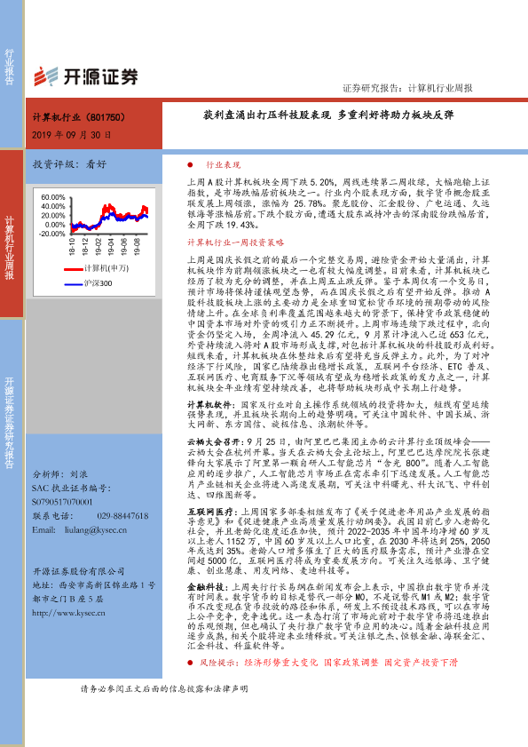 【开源证券】【20190930】计算机行业周报:获利盘涌出打压科技股表现 多重利好将助力板块反弹-12页