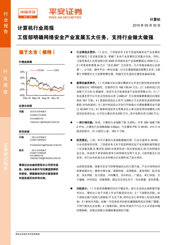 【平安证券】【20190930】计算机行业周报:工信部明确网络安全产业发展五大任务,支持行业做大做强-5页