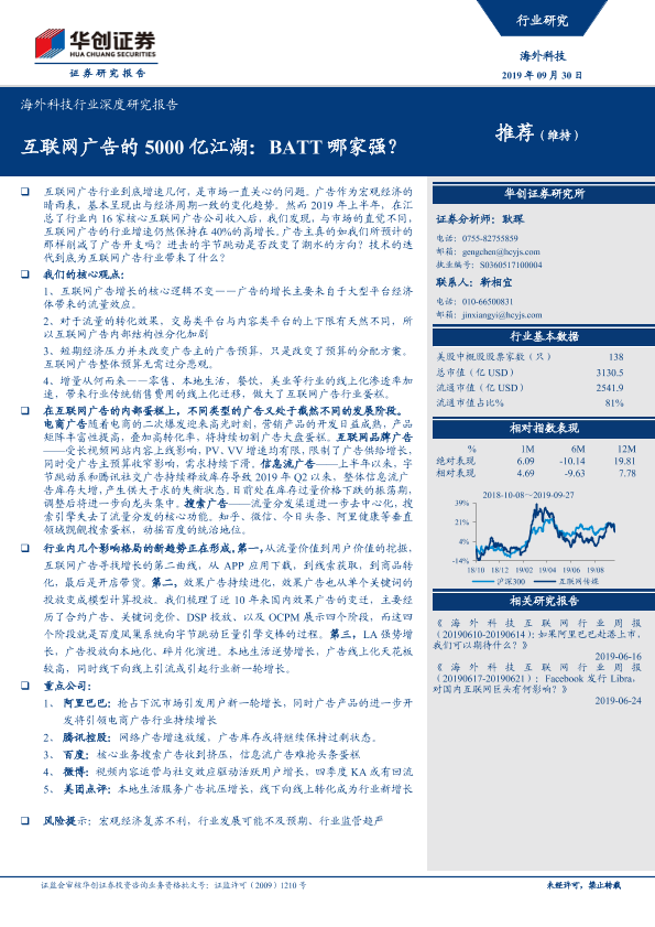 【华创证券】【20190930】互联网广告的5000亿江湖:BATT哪家强?-41页