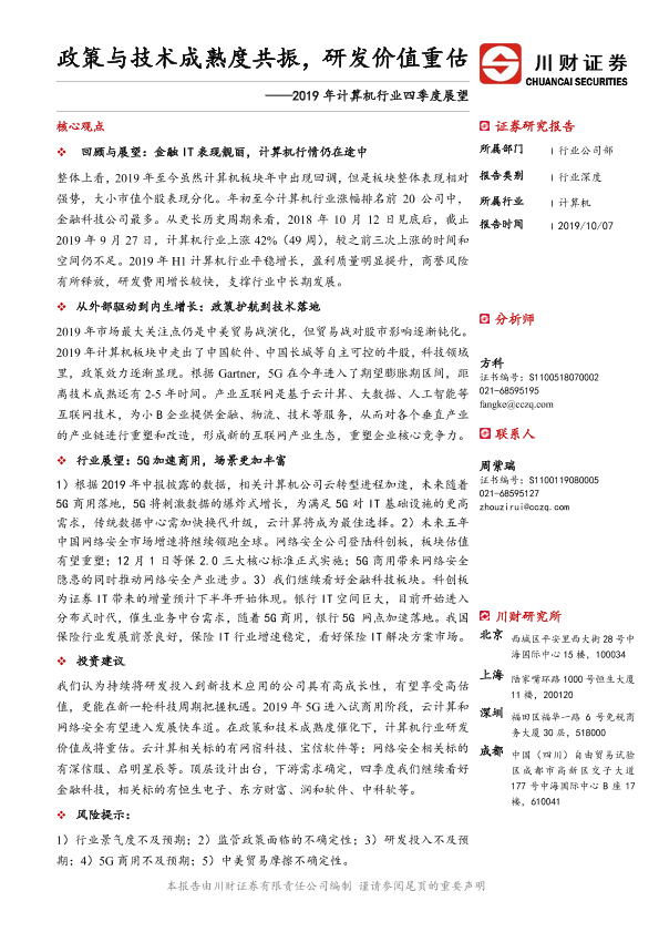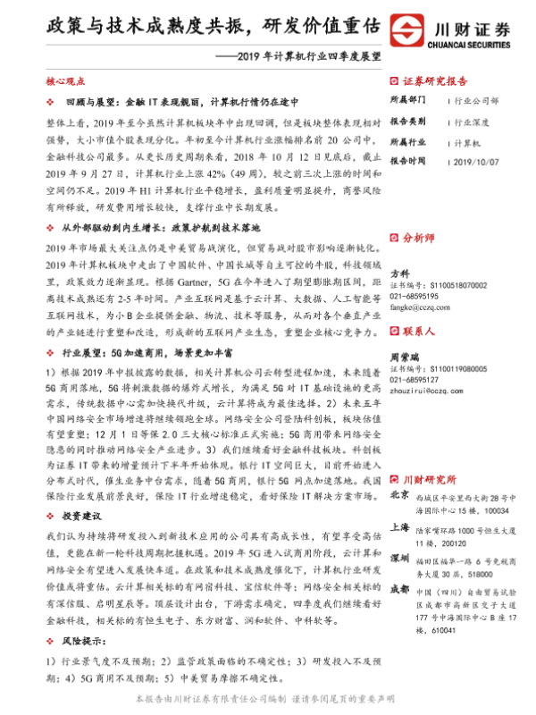 【川财证券】【20191007】2019年计算机行业四季度展望:政策与技术成熟度共振,研发价值重估-32页