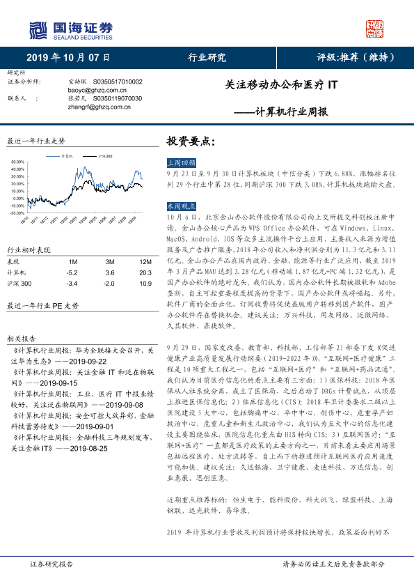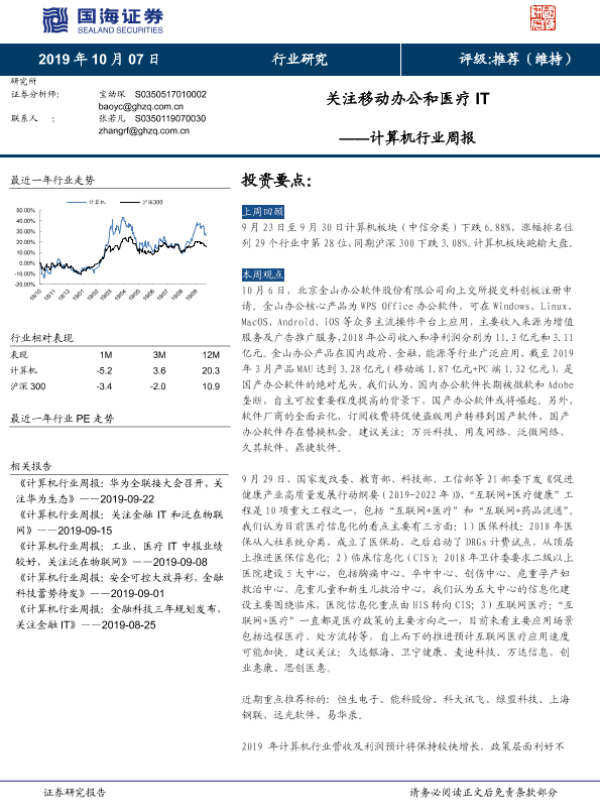 【国海证券】【20191007】计算机行业周报:关注移动办公和医疗IT-11页