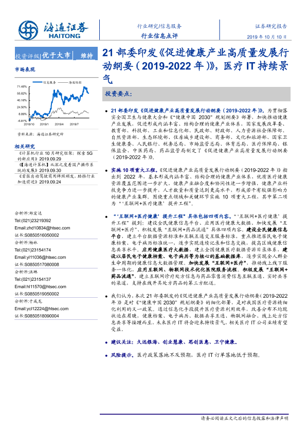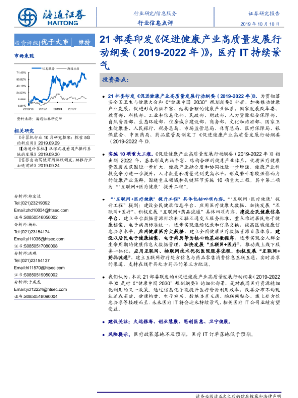 【海通证券】【20191010】信息服务行业信息点评:21部委印发《促进健康产业高质量发展行动纲要(2019-2022年)》,医疗IT持续景气-2页