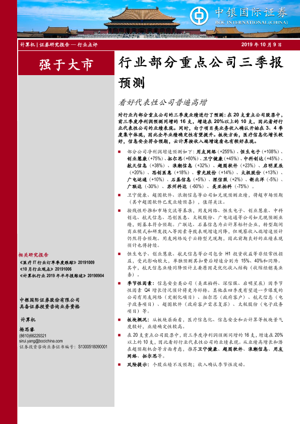 【中银证券】【20191009】计算机行业部分重点公司三季报预测:看好代表性公司普遍高增-5页