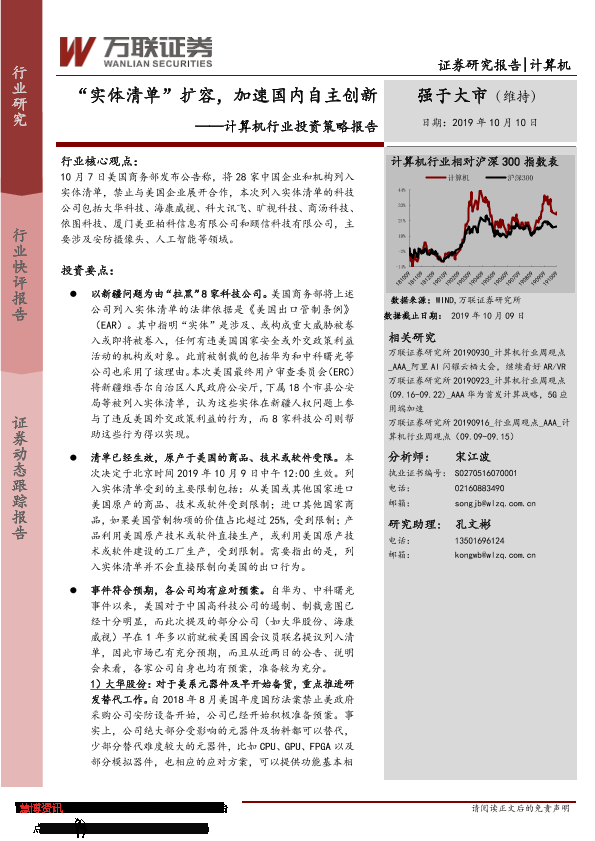 【万联证券】【20191010】计算机行业投资策略报告:“实体清单”扩容,加速国内自主创新-4页