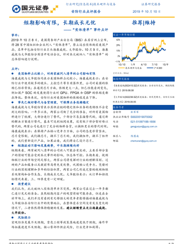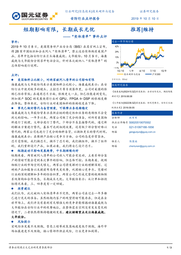 【国元证券】【20191010】20191010-国元证券-安防行业:“实体清单”事件点评-短期影响有限,长期成长无忧-3页