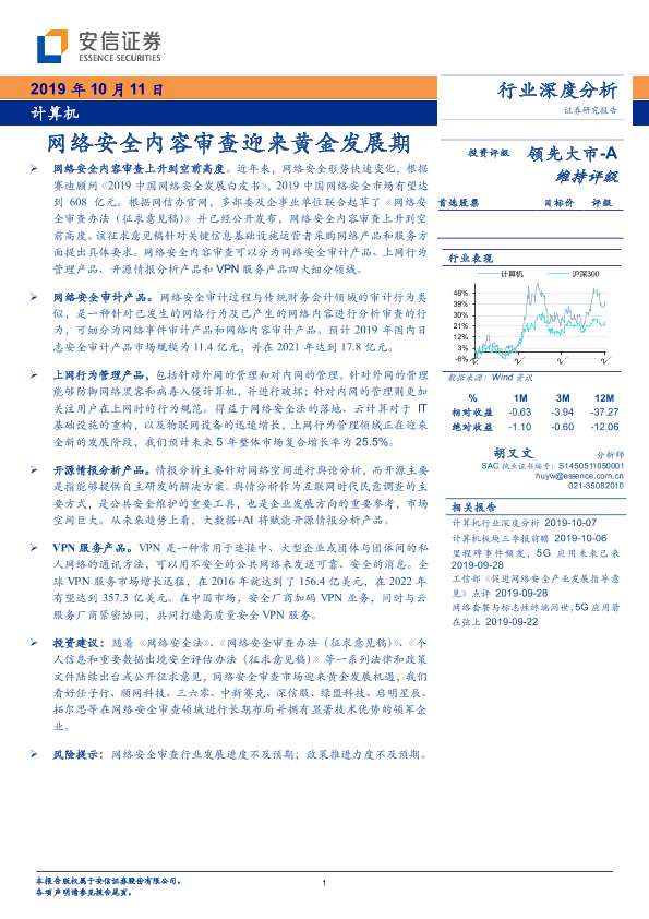 【安信证券】【20191011】计算机行业深度分析:网络安全内容审查迎来黄金发展期-20页
