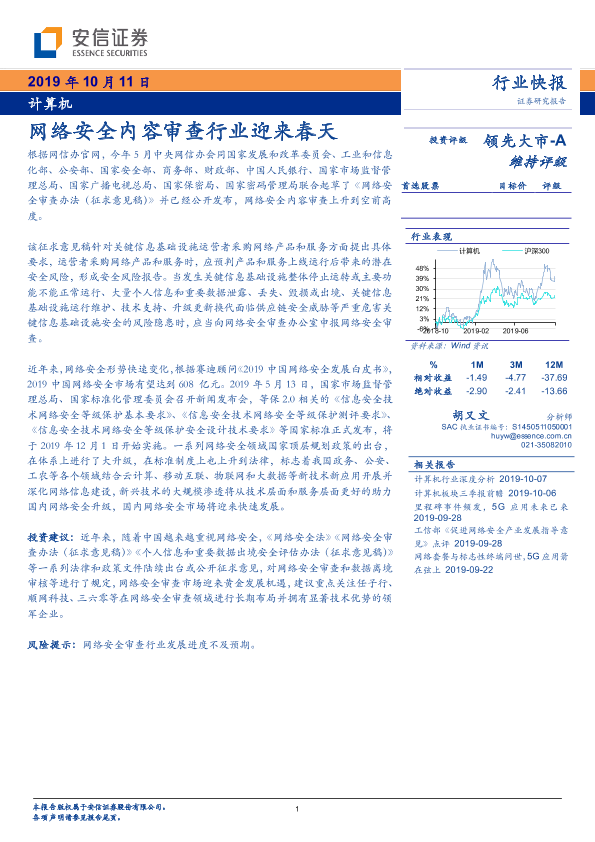 【安信证券】【20191011】计算机行业快报:网络安全内容审查行业迎来春天-3页