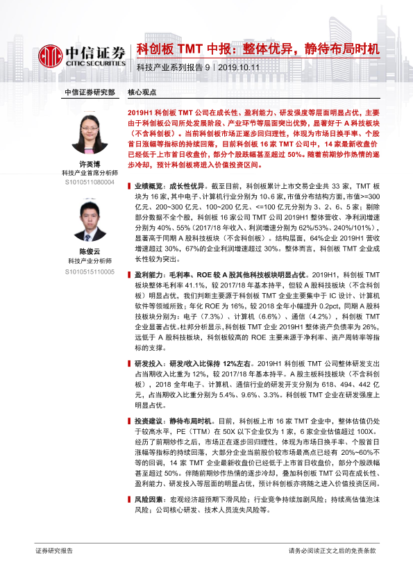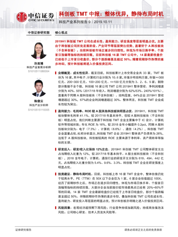 【中信证券】【20191011】科创板TMT中报:整体优异,静待布局时机-10页