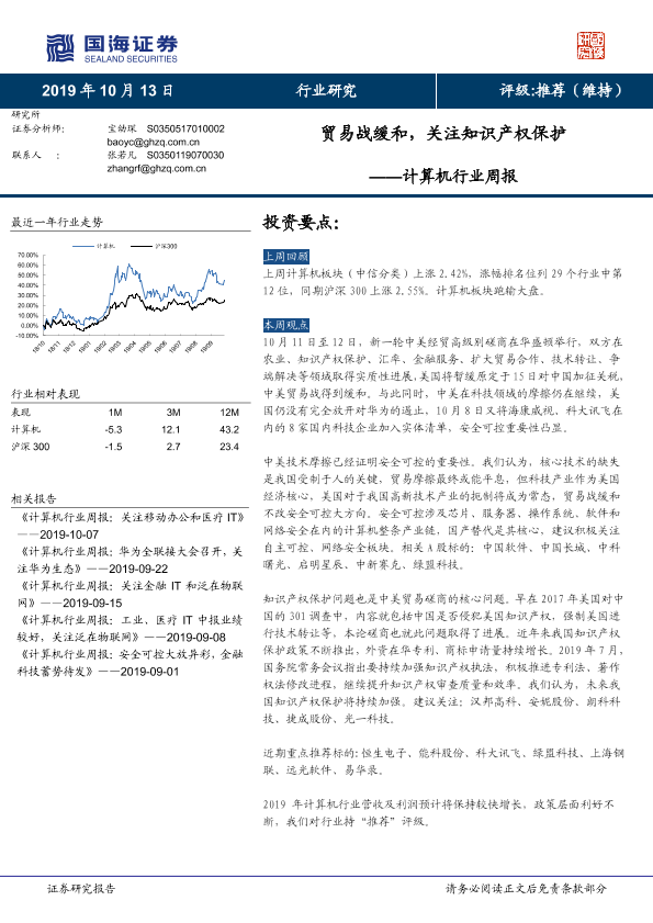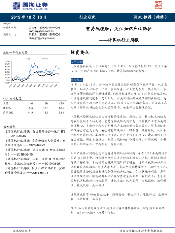 【国海证券】【20191013】计算机行业周报:贸易战缓和,关注知识产权保护-10页