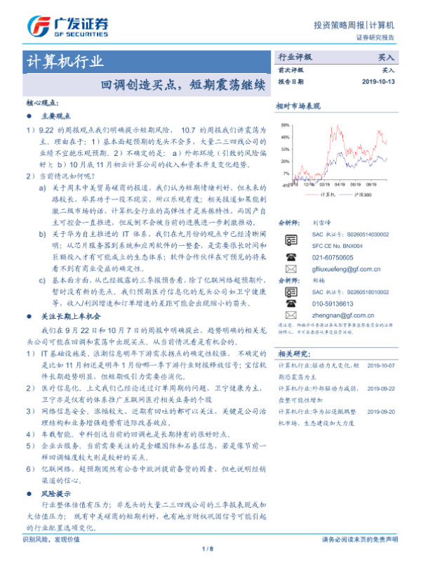 【广发证券】【20191013】20191013-广发证券-计算机行业投资策略周报:回调创造买点,短期震荡继续-8页