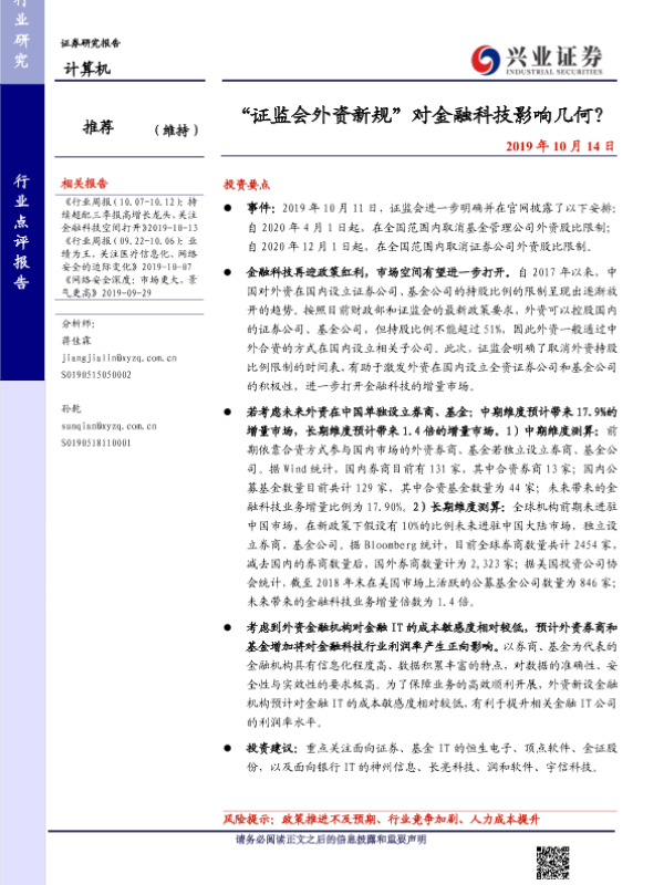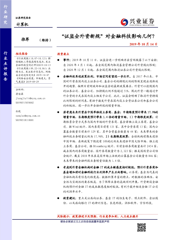 【兴业证券】【20191014】“证监会外资新规”对金融科技影响几何?-5页