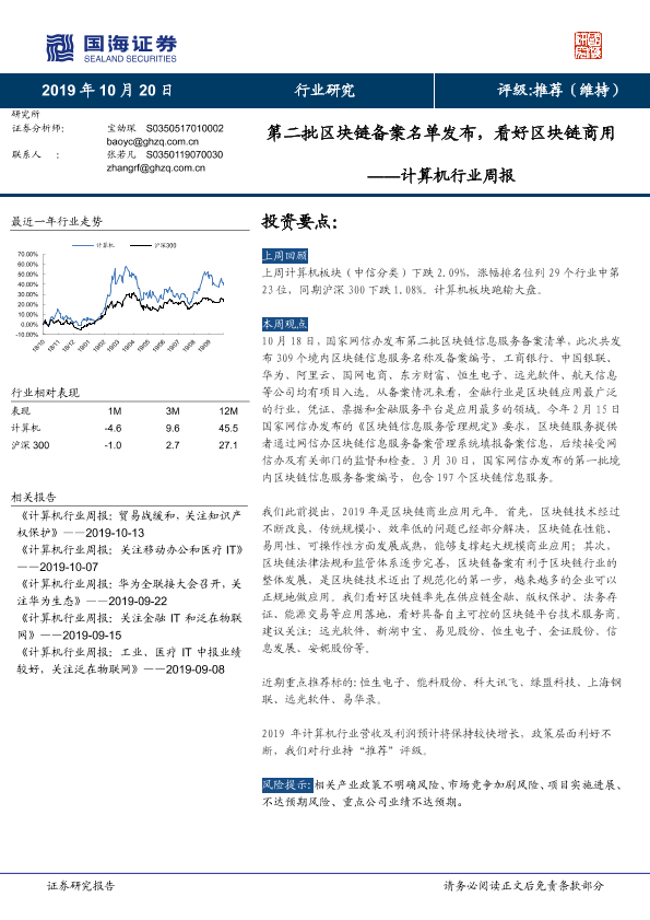 【国海证券】【20191020】计算机行业周报:第二批区块链备案名单发布,看好区块链商用-11页