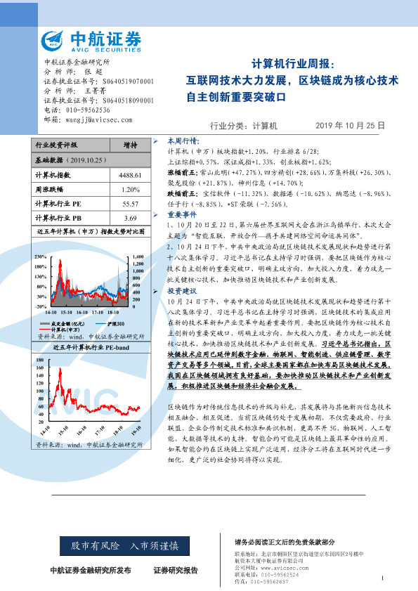 【中航证券】【20191025】计算机行业周报:互联网技术大力发展,区块链成为核心技术自主创新重要突破口-4页
