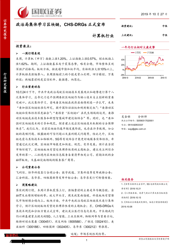 【国联证券】【20191027】政治局集体学习区块链,CHS-DRGs正式宣布-20页