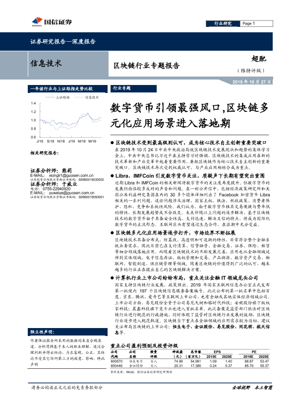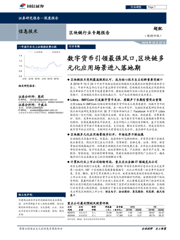 【国信证券】【20191027】20191027-国信证券-区块链行业专题报告:数字货币引领最强风口,区块链多元化应用场景进入落地期-42页