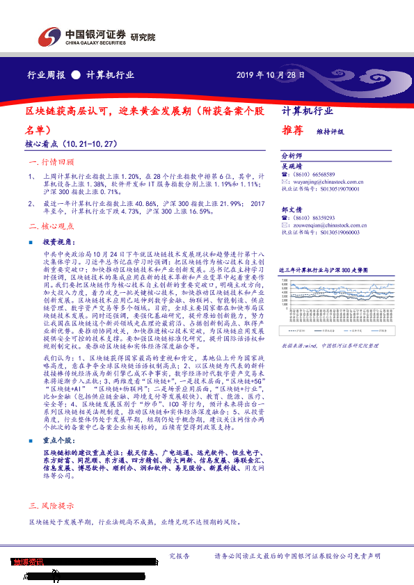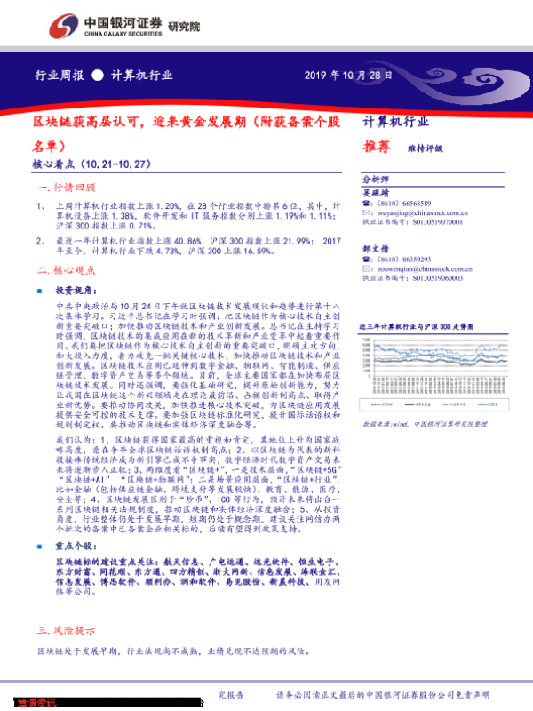 【银河证券】【20191028】20191028-中国银河-计算机行业周报:区块链获高层认可,迎来黄金发展期(附获备案个股名单)-21页
