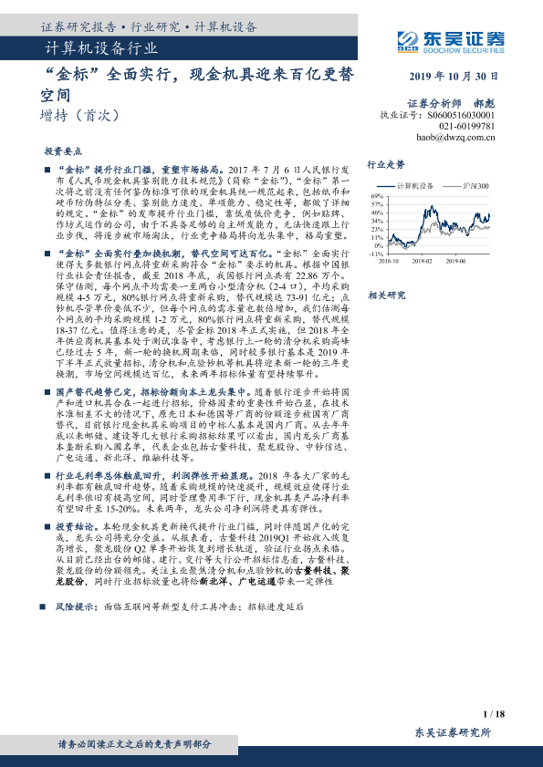 【东吴证券】【20191030】“金标”全面实行,现金机具迎来百亿更替空间-18页